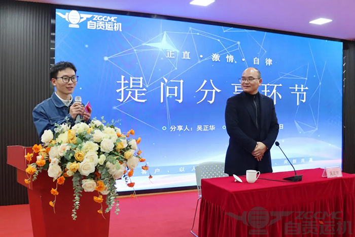 在这次活动中,吴正华总经理围绕运机集团的发展历程、董事长的创业故事、个人的成长经历以及对应届生的期望和要求等主题进行了精彩的讲解。他凭借对行业的深刻洞察和卓越的自我管理能力,为新员工们呈现了一场内容丰富的知识盛宴。