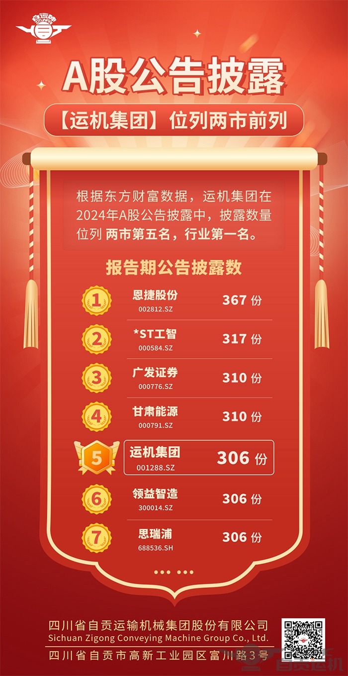 【喜讯】A股公告披露!运机集团位列两市前列
