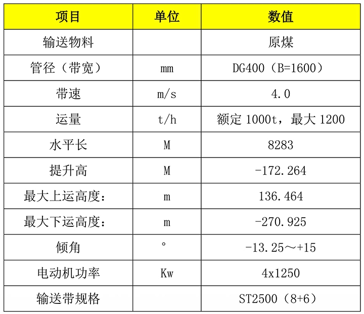 山西阳泉燕龛煤矿管带机于2014年建成投入使用,具有输送距离长,驱动功率大,带强高,危险工况下胶带安全系数偏低,地形复杂,转弯多,立面起伏大,运行工况十分复杂等技术特点。